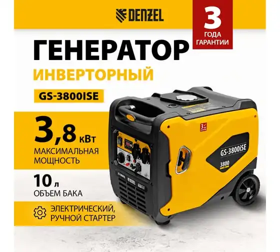 Генератор инверторный Denzel GS-3800iSE, 3,8 кВт, 230 В, закрытый корпус,электростартер 94711
