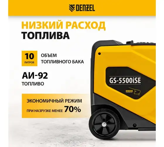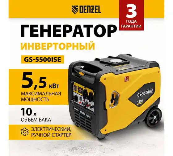 Генератор инверторный Denzel GS-5500iSE, 5,5 кВт, 230 В, закрытый корпус, электростартер 94712