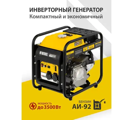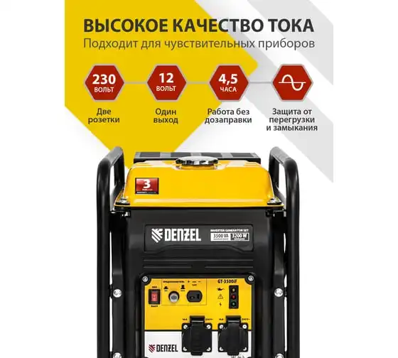 Инверторный генератор Denzel GT-3500iF, 3,5 кВт, 230 В, бак 5 л, открытый корпус 94705