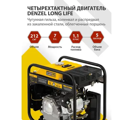 Генератор инверторный Denzel GK-5500iF, 5,5 кВт, 230 В, ручной старт 94709