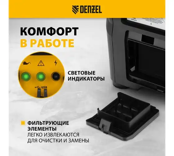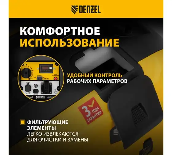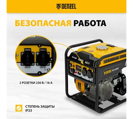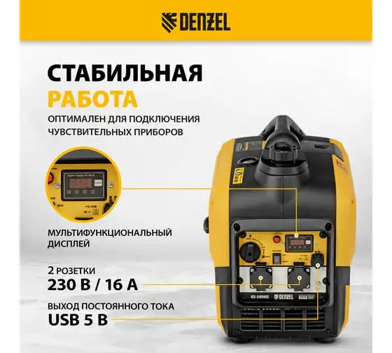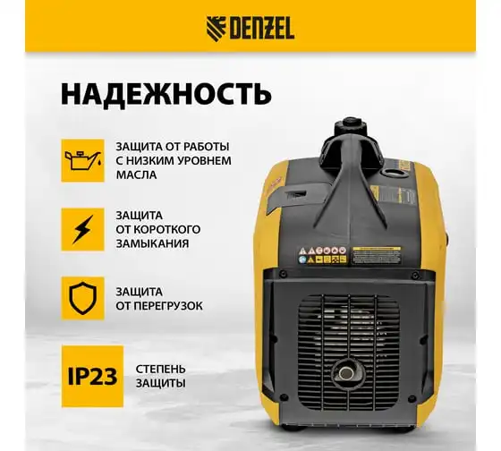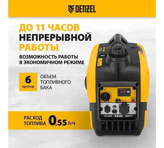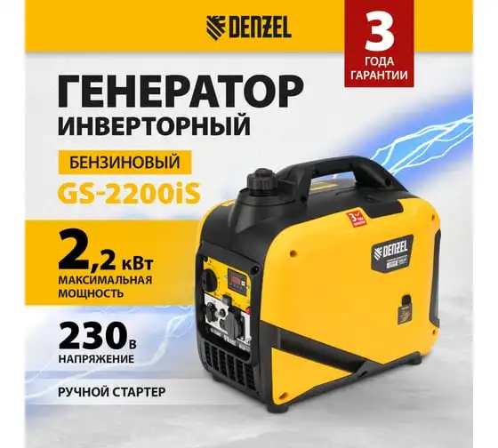 Генератор инверторный Denzel GS-2200iS, 2,2 кВт, 230 В, закрытый корпус, ручной старт 94713