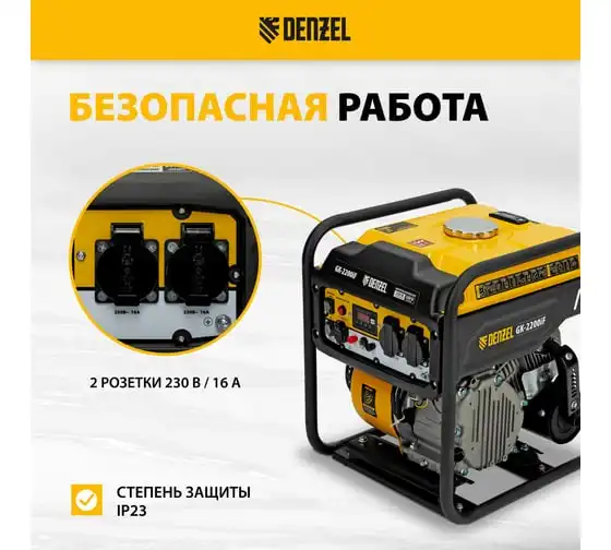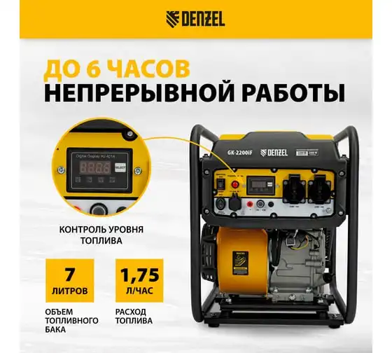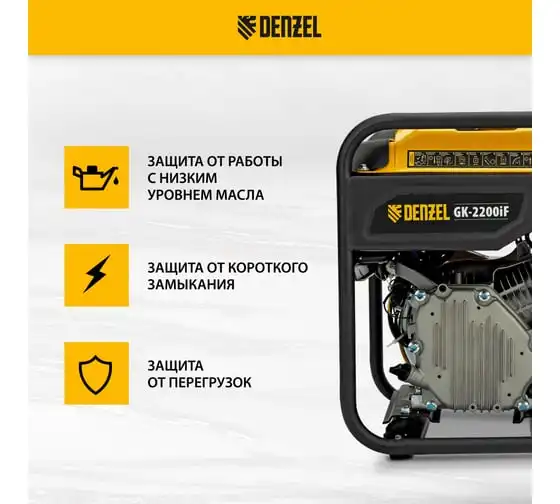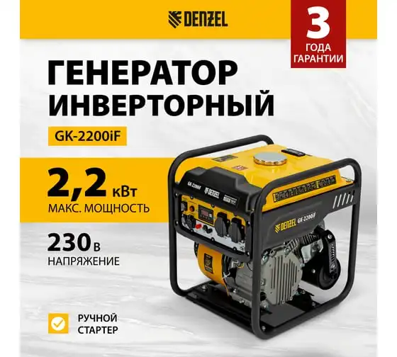Генератор инверторный Denzel GK-2200iF, 2,2 кВт, 230 В, ручной старт 94707