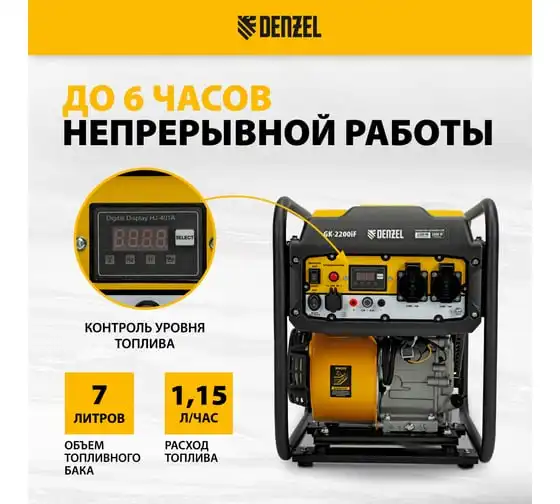 Инверторный генератор Denzel GT-2200iS 2,2 кВт, 230 В, бак 4 л 94702