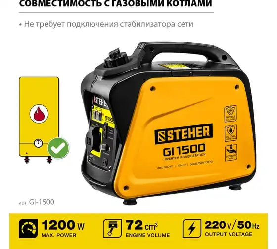 Инверторный генератор STEHER 1200 Вт GI-1500