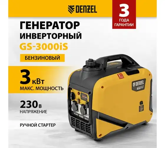 Генератор инверторный Denzel GK-3800iF, 3,8 кВт, 230 В, ручной старт 94708