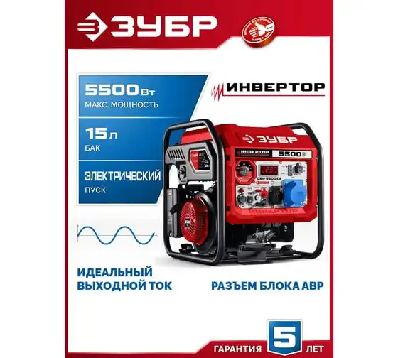 ЗУБР 5500 Вт, инверторный генератор с электростартером и розеткой АВР СБИ-5500ЕА