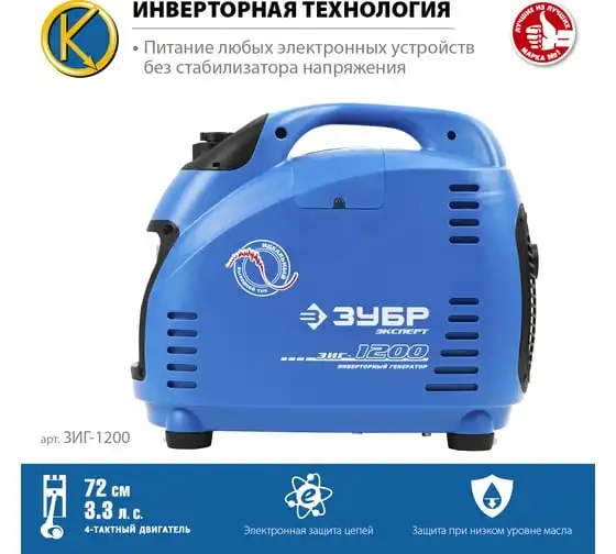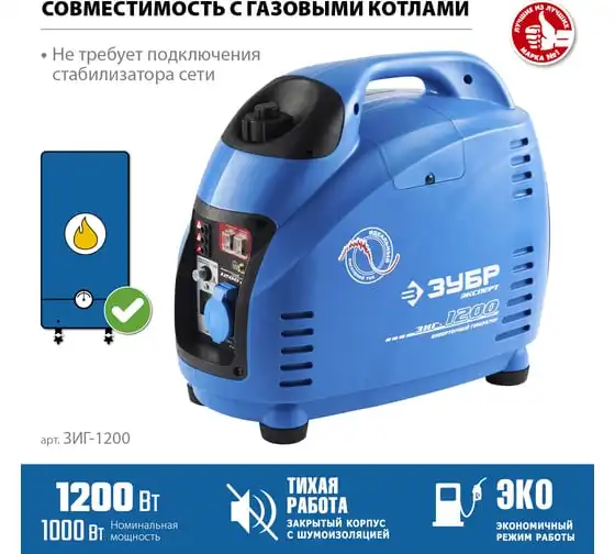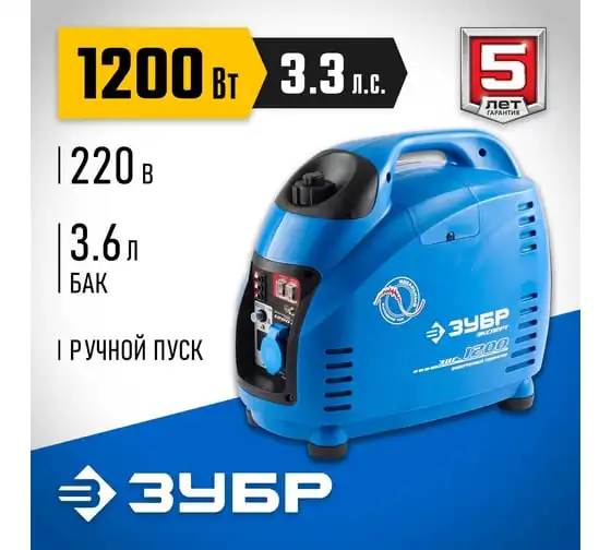Инверторный генератор ЗУБР Профессионал 1200 Вт ЗИГ-1200