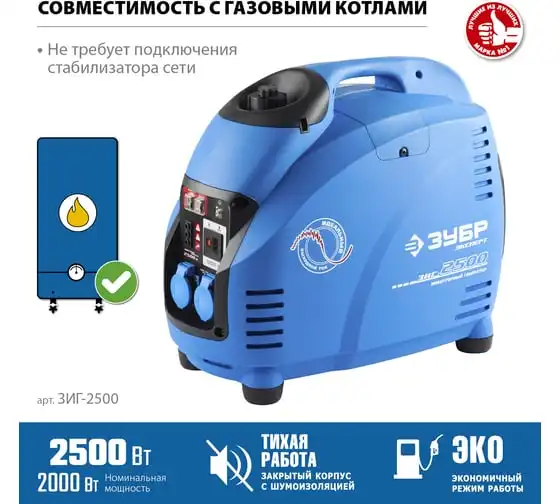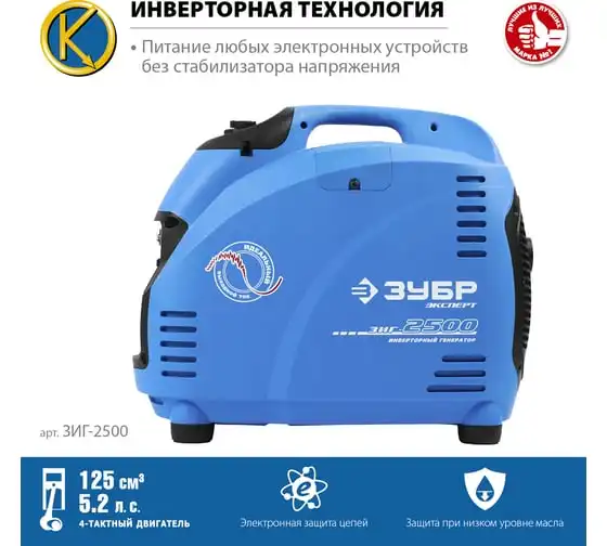 Инверторный генератор ЗУБР Профессионал 2500 Вт ЗИГ-2500