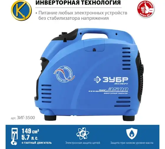 Инверторный генератор ЗУБР Профессионал 3500 Вт ЗИГ-3500