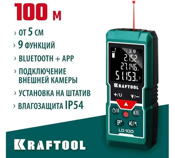 Дальномер "LD-100" лазерный Kraftool дальность 5см - 100м, точность 1,5 мм, 34765