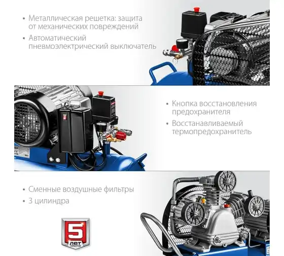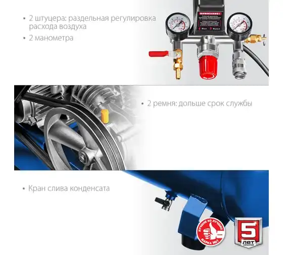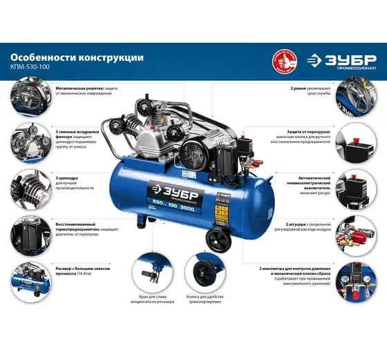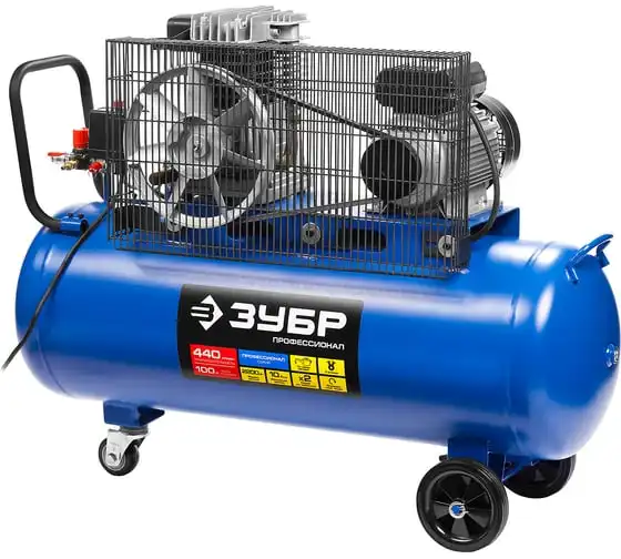 Масляный компрессор Зубр Профессионал 440 л/мин, 100 л, 2200 Вт, ременной ЗКПМ-440-100-Р-2.2