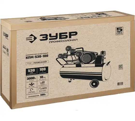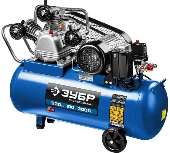 Ременной воздушный компрессор ЗУБР Профессионал, 380 В, 530 л/мин, 100 л ресивер, 3000 Вт, КПМ-530-100