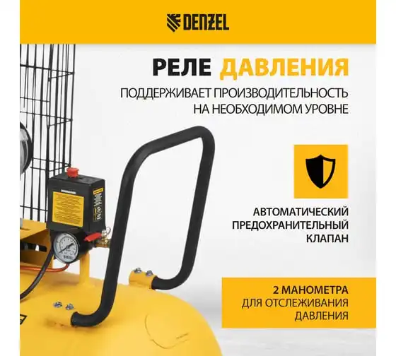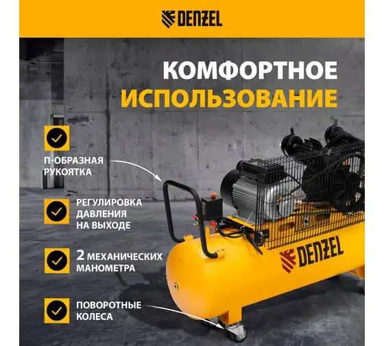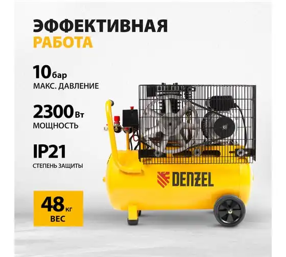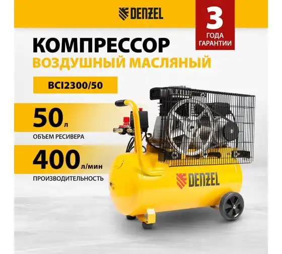 Воздушный компрессор с ременным приводом DENZEL BCI2300/50 2.3 кВт, 50 литров, 400 л/мин 58113