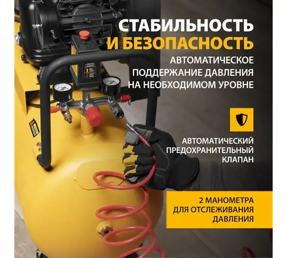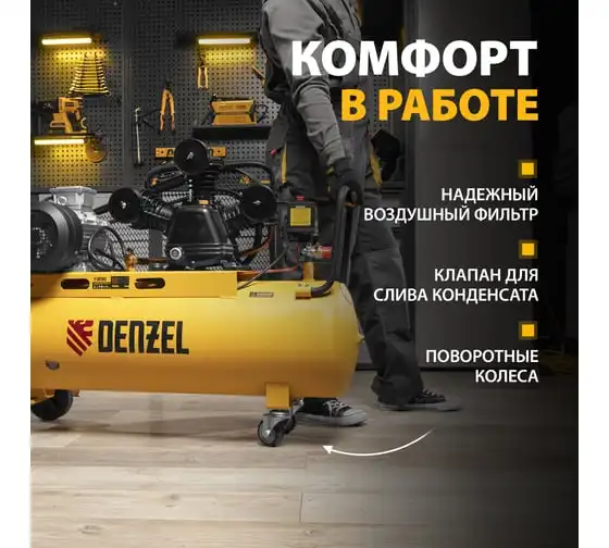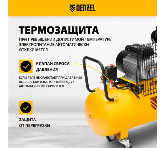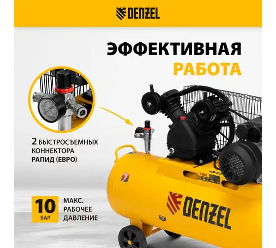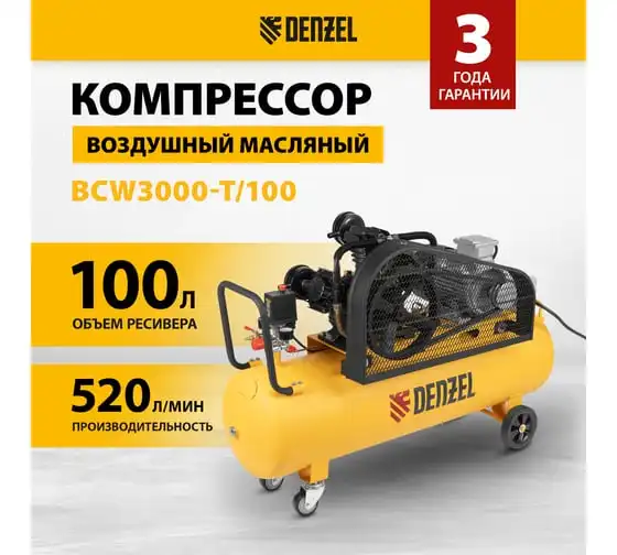 Воздушный компрессор с ременным приводом DENZEL BCW3000-T/100, 3,0 кВт, 100 литров, 520 л/мин 58118