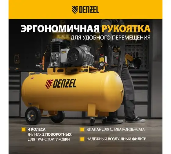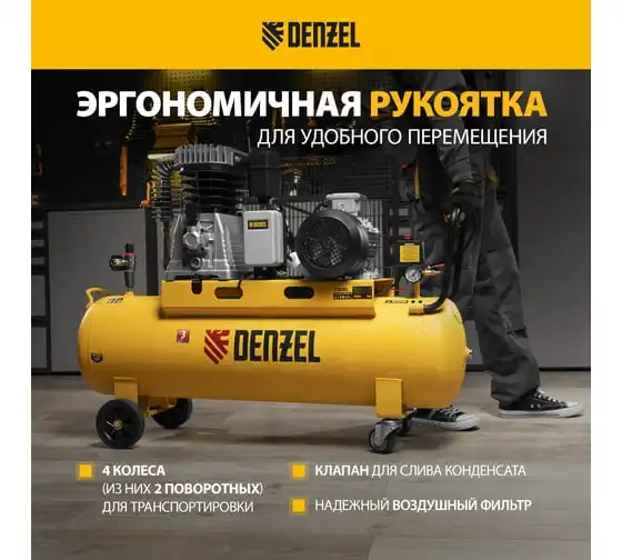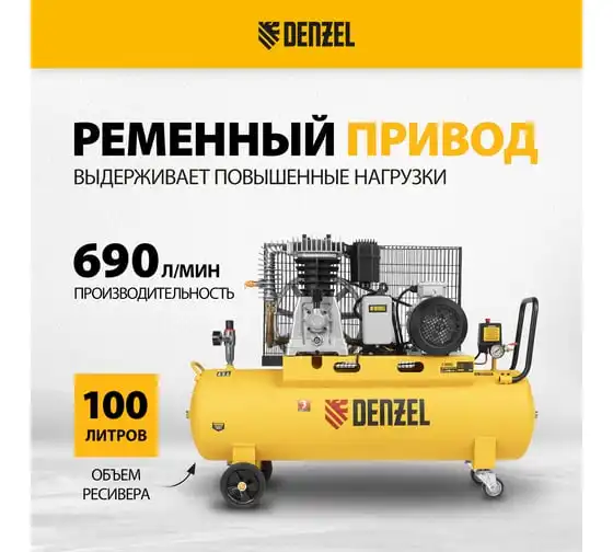 Воздушный компрессор Denzel BCI4000-T/100 ременной привод, 4,0 кВт, 100 литров, 690 л/мин 58123