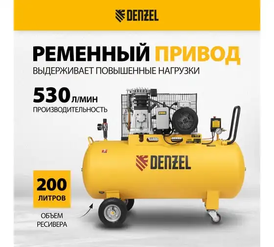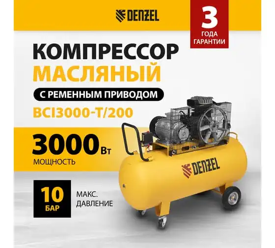 Воздушный компрессор Denzel BCI4000-T/200, ременной привод 4,0 кВт, 200 литров, 690 л/мин 58124