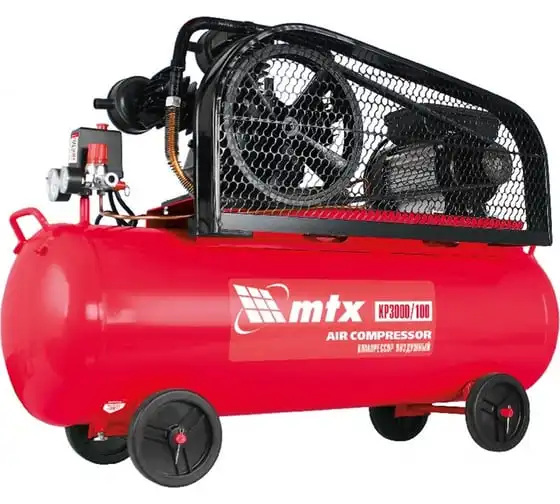 Воздушный компрессор КР3000/100, ременной привод, 3,0 кВт, 100 литров, 510 л/мин MTX 58048