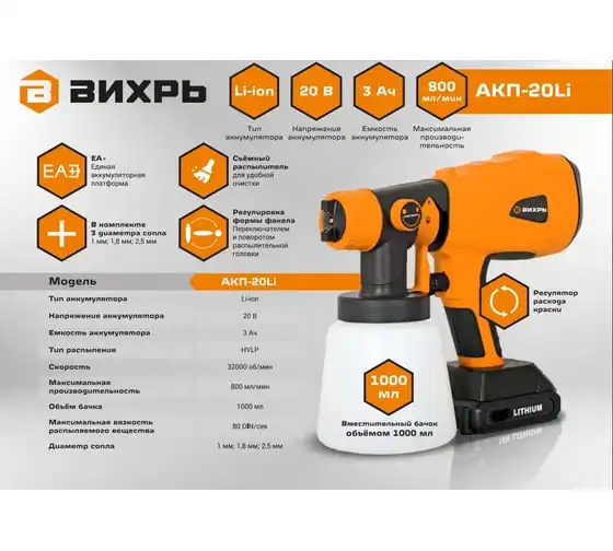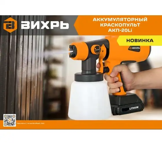 Краскопульт аккумуляторный Вихрь АКП-20Li (в комплекте 1 АКБ и ЗУ) 72/17/5