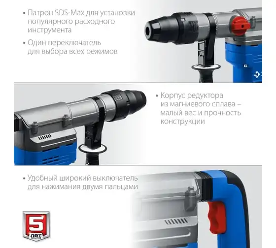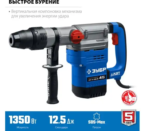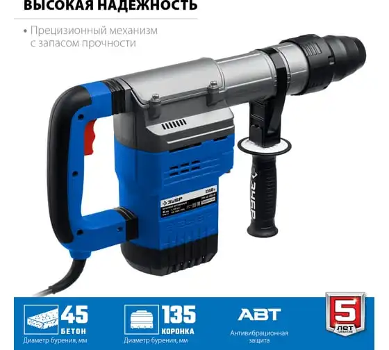 Перфоратор ЗУБР Профессионал SDS Max 1350 Вт, 45 мм ЗПМ-45-1350 ЭВ