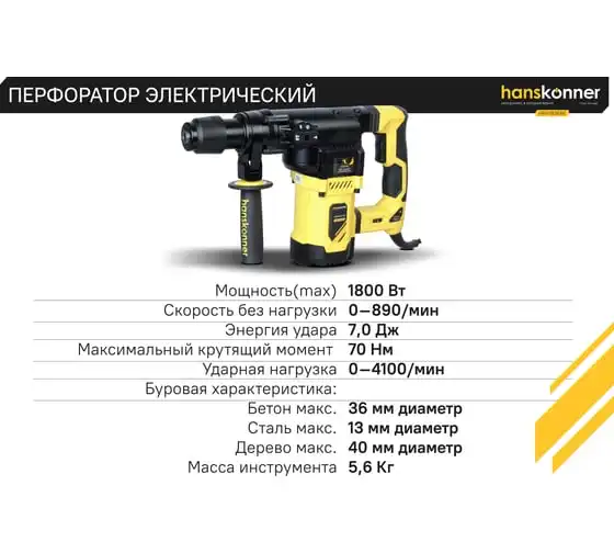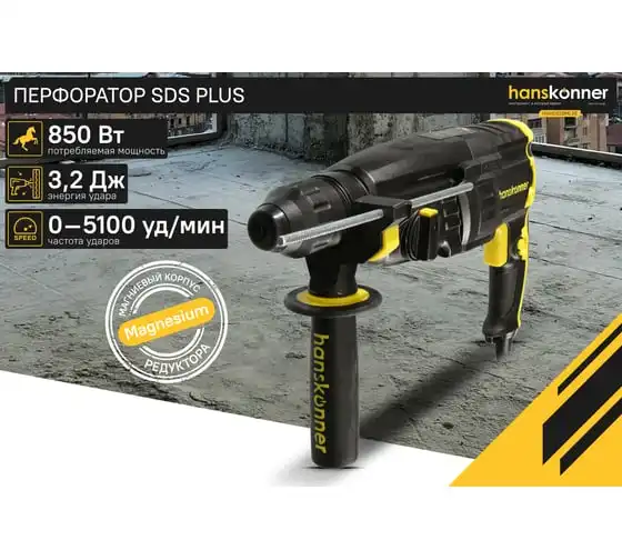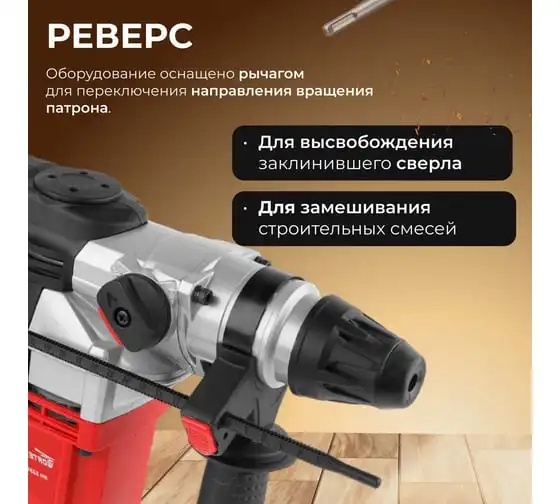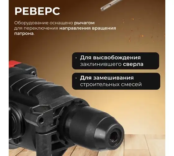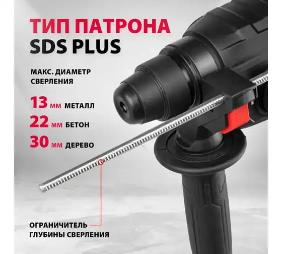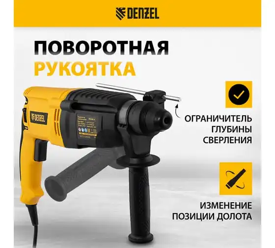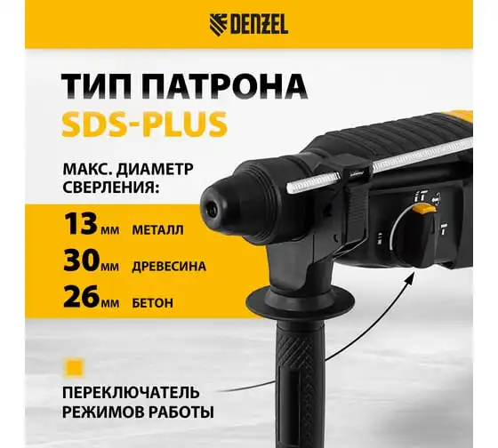 Электрический перфоратор Denzel rhh-800-26, sds-plus, 800 вт, 3 дж, 3 плюс 1 режим 26607