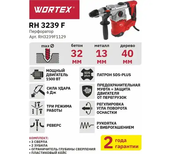 Перфоратор WORTEX RH 3239 F RH3239F1129