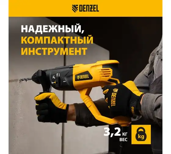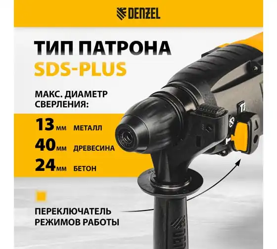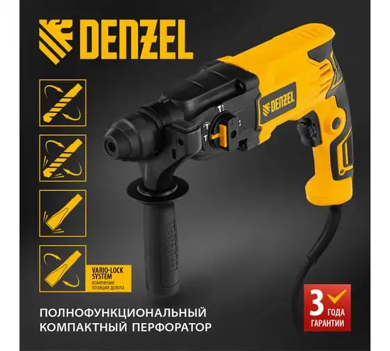 Электрический перфоратор Denzel rhh-800-26, sds-plus, 800 вт, 3 дж, 3 плюс 1 режим 26607