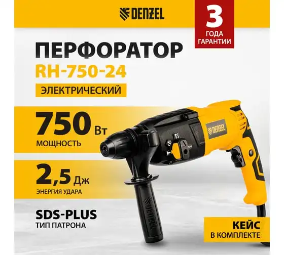 Электрический перфоратор DENZEL RH-750-24 26605