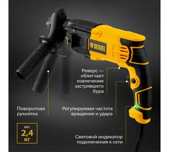 Электрический перфоратор Denzel rhh-600-22, sds-plus, 600 вт, 2.5 дж, 2 режима 26602