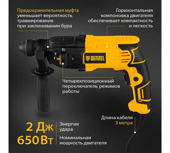 Электрический перфоратор DENZEL RH-650-18 26603