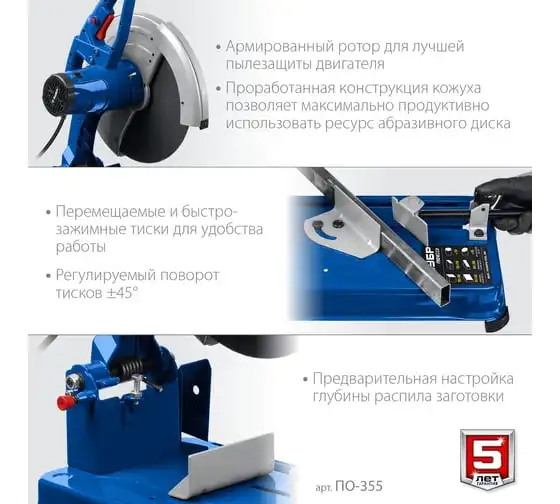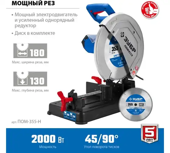 Отрезная пила ЗУБР Профессионал d 355 мм, 2000 Вт ПОМ-355