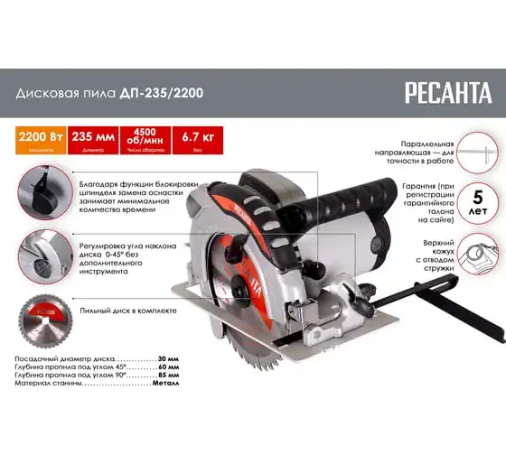Дисковая пила Ресанта ДП-235/2200 75/11/4