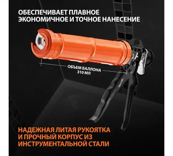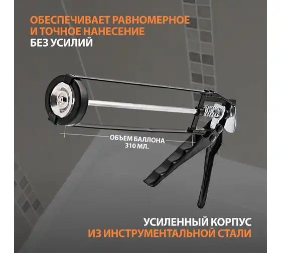 Пистолет для герметика SPARTA 310 мл, "полуоткрытый", круглый шток 7 мм, утолщенные стенки 886365