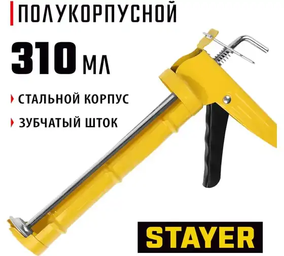 Полукорпусной пистолет для герметиков STAYER Standard, зубчатый шток 310 мл 0661