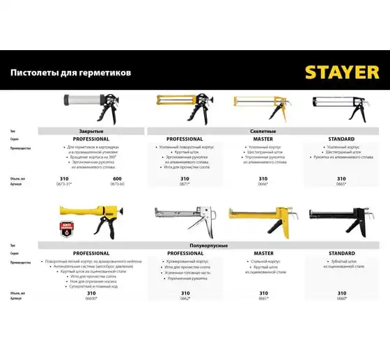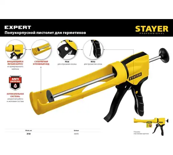 Полукорпусной пистолет для герметика Stayer Expert 310 мл 06690