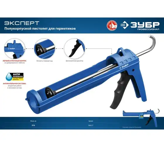 Полукорпусной пистолет для герметика Зубр 310 мл, Профессионал 06627