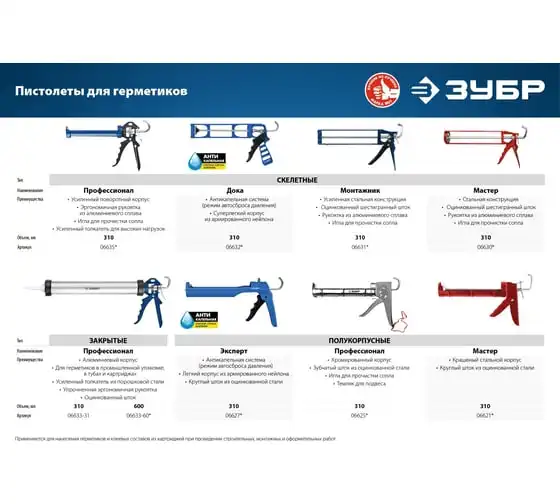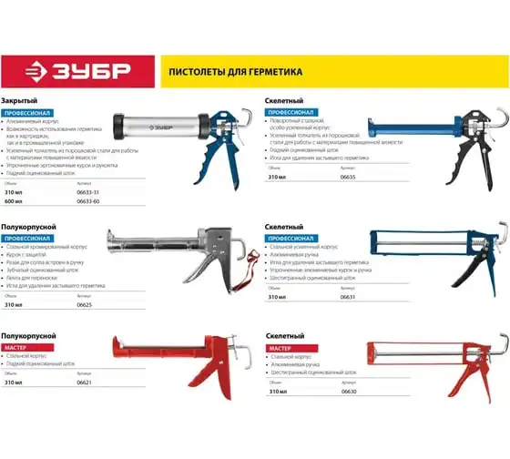 Скелетный пистолет для герметика ЗУБР Профессионал, 310 мл, 06635