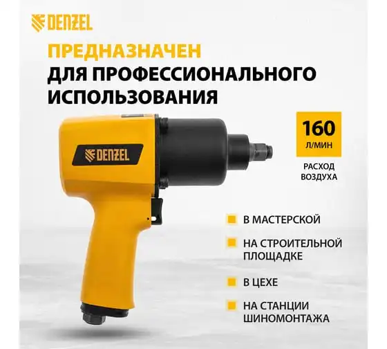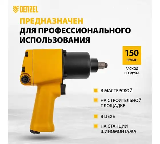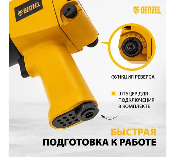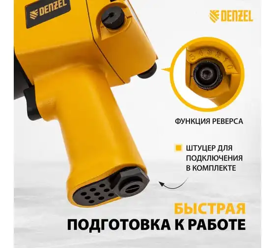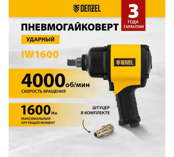 Ударный пневмогайковерт Denzel iw1600 3/4, 4000 об/мин, 1600 нм 57489