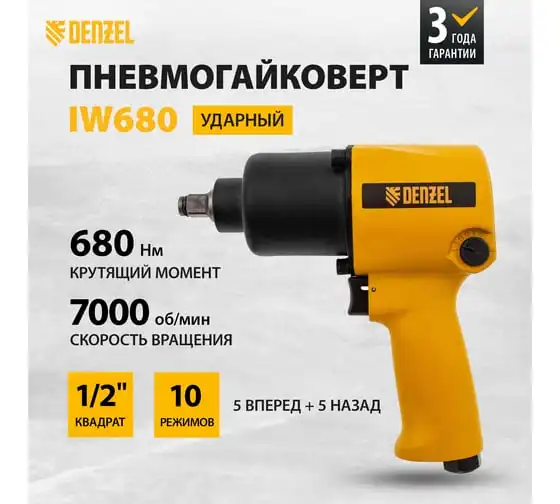 Ударный пневмогайковерт Denzel iw2600 4000 об/мин, 2600 нм 57490