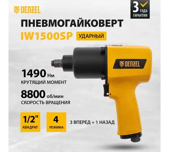 Ударный пневмогайковерт Denzel IW1500SP, 1/2 , 8800 об/мин, 1490 Нм 57474