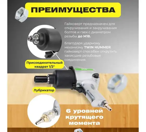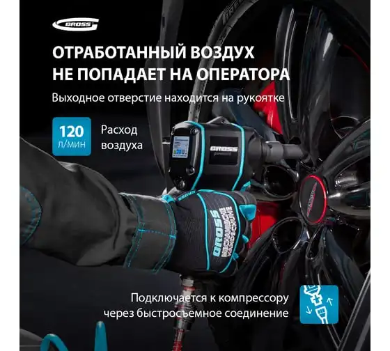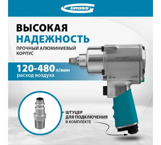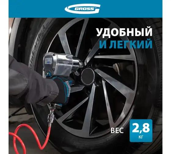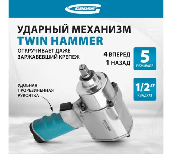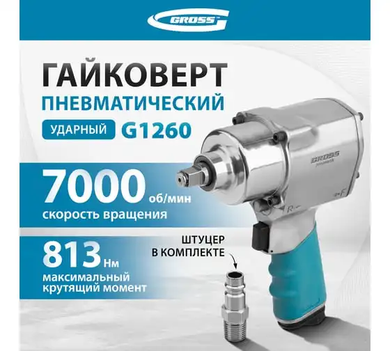 Пневматический ударный гайковерт GROSS G1260,1/2",Twin Hammer, 813Нм, 7000 об/мин // 57441