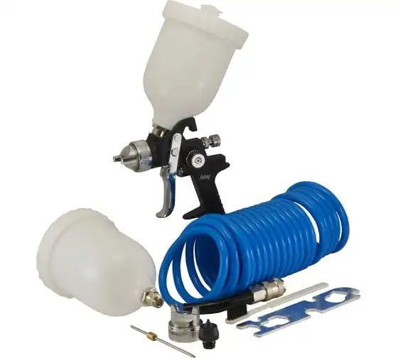 краскопульт с верхним бачком, краскопульт для вязких жидкостей, пистолет для продувки, пистолет для подкачки шин, витой шланг (