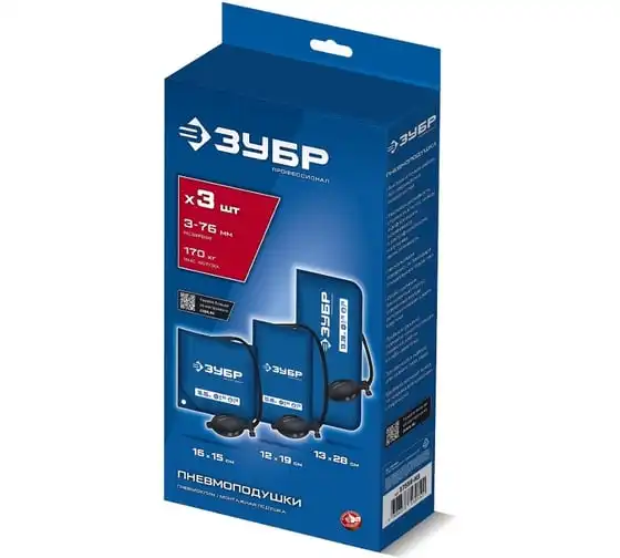 Пневмоподушка ЗУБР набор 3шт универсальный пневмоклин/ монтажная подушка/ пневмодомкрат 12х19, 16х15, 13х28 см, 170кг, в чехле 37556-Н3