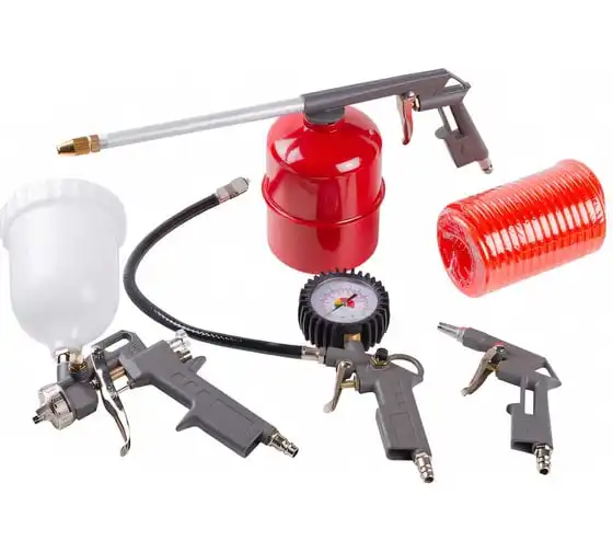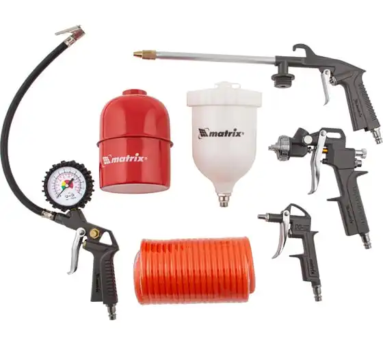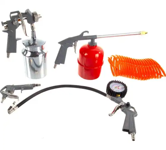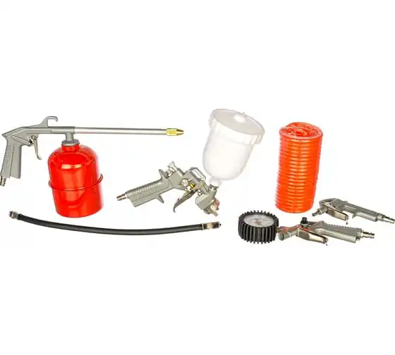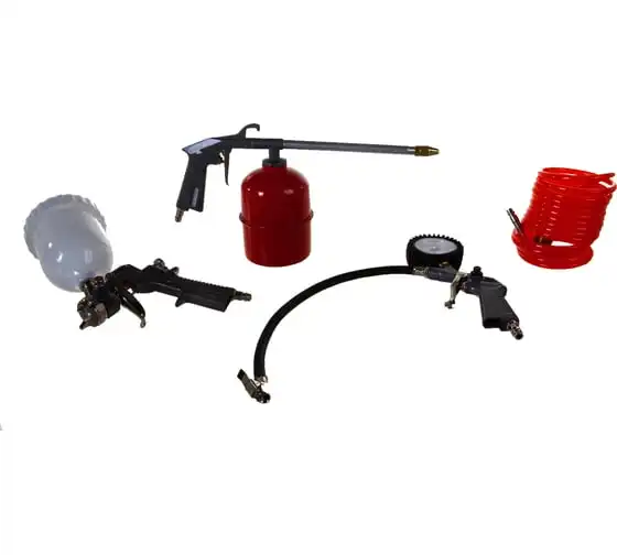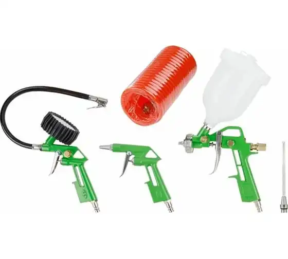 краскораспылитель, пистолет моечный, пистолет для подкачки шин, пистолет продувочный, шланг спиральный (