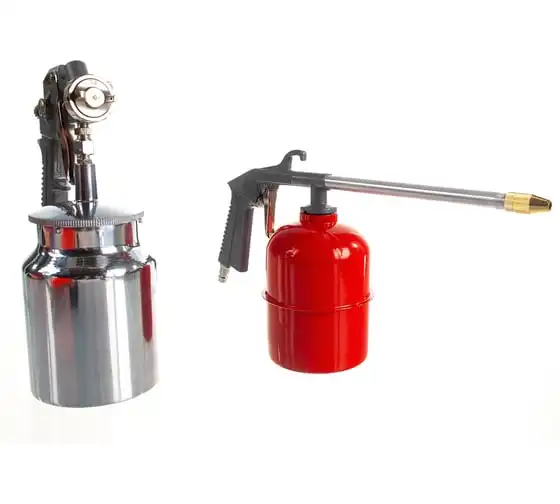 краскопульт с нижним бачком, краскопульт для вязких жидкостей, пистолет для продувки, пистолет для подкачки шин, витой шланг (