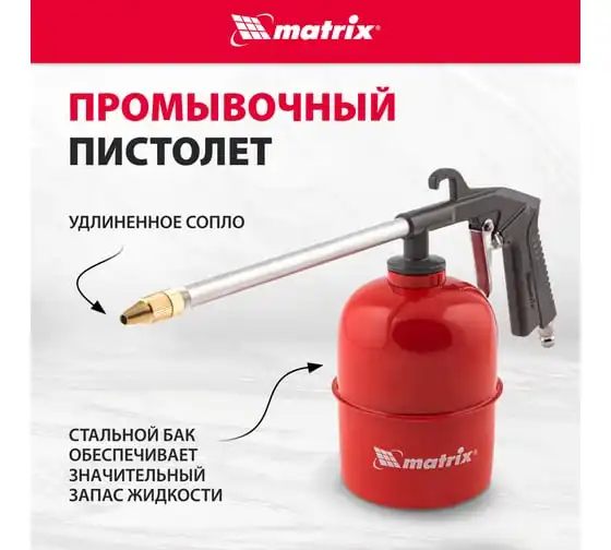 Металлический бачок краскораспылителя; Пистолет моечный; Пистолет для подкачки шин с манометром; Пистолет продувочный; Шланг спиральный; Картонная кор (