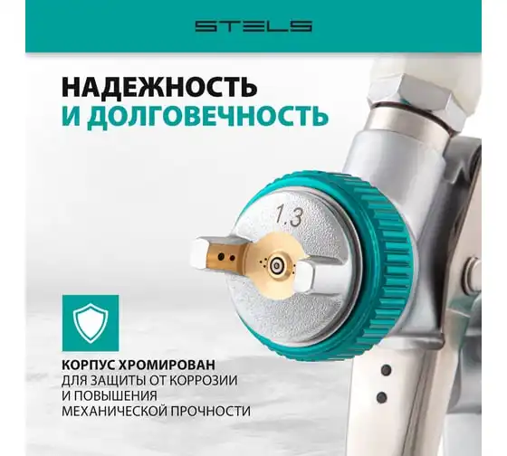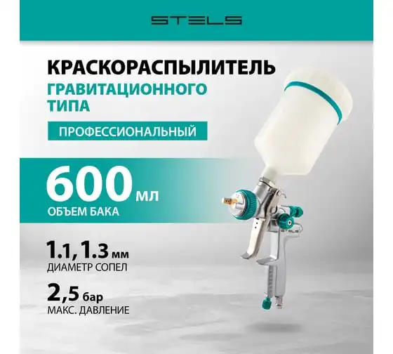 Краскораспылитель STELS AG 901 LVMP профессиональный, гравитационного типа, сопла 1.3 и 1.1 мм 57365