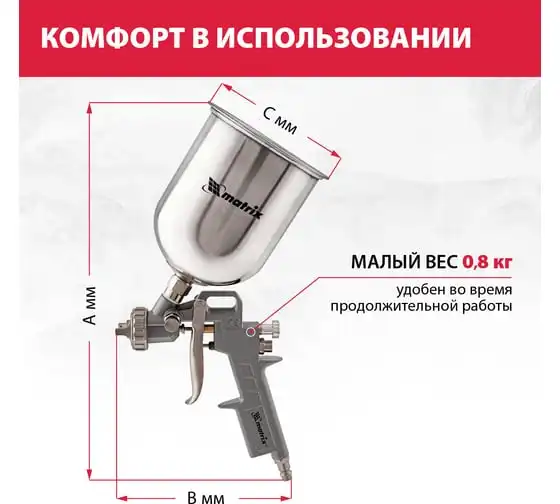 Пневматический краскораспылитель с верхним бачком MATRIX 57315