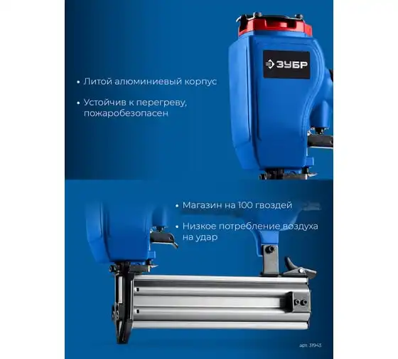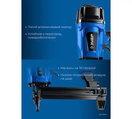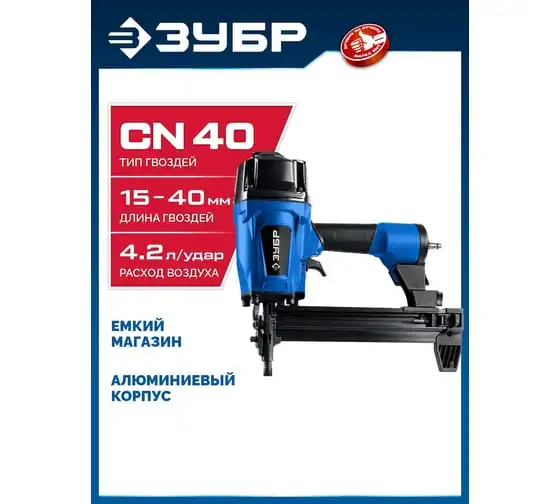 Пневматический нейлер для гвоздей по бетону и металлу ЗУБР CN-40, Профессионал 31940