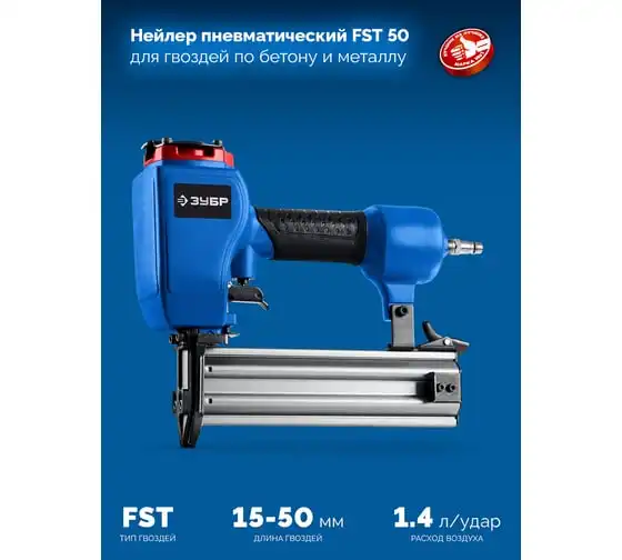 Пневматический нейлер для гвоздей по бетону и металлу ЗУБР FST-50, Профессионал 31943