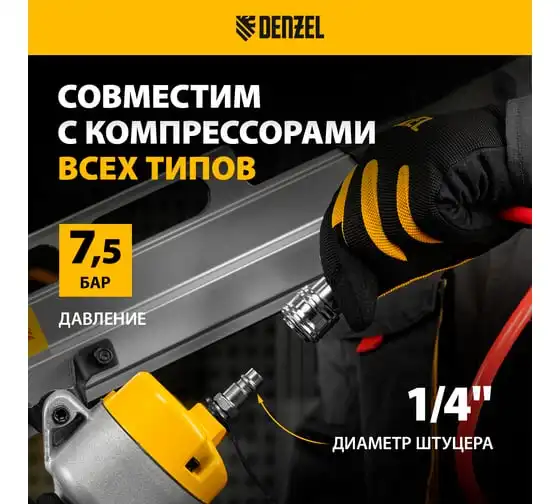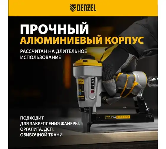 Пневматический степлер для прямоугольных скоб Denzel ps8016 21ga от 6 до 16 мм 57400